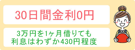 ➡ 昔に比べかなり金利は低く、例えば3万円を1カ月借りても利息は430円前後と少額です。