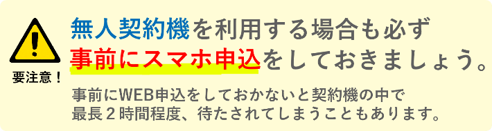 無人機で借りる場合もWEB審査を先に受ければ待たずに時間を大幅に短縮できるので必ずweb申し込みを選択しましょう。(WEB申込を事前にしないと無人機内で最大2時間待つこともあるので要注意です)