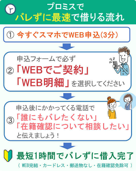 バレずに今すぐ借りるための手順やテクニックを使うことで「誰にもバレずに今すぐ借りられる可能性」を大きくUPすることが出来ます。