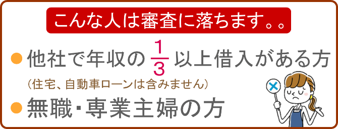 タイヤのパンクで税込み9万円が急に必要になりました。カード決 済が通らず、ネット申し込みをしました。主婦としてやりくりできてないのが旦那にばれるのが嫌でネット申し込みをしてみました。 パートで働いていたので10万円ぐらいなら大丈夫かな?と初 めての挑戦!悪いことをするわけではないのになぜかドキドキしました。電話確認の後指定口座にすぐに振り込んでいただき驚きまし た。というか、、助かりました。
